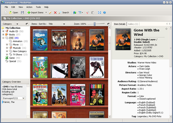Program obsługuje standard Unicode co umożliwia pracę w dowolnym języku. Dostępne jest sortowanie według zadanych kryteriów. Do każdej pozycji w kolekcji można dodać własne opisy oraz szereg informacji np. czy znajduje się w zbiorze, czy też została wypożyczona. Za pomocą programu można również dokonać zakupów w serwisie Amazon.